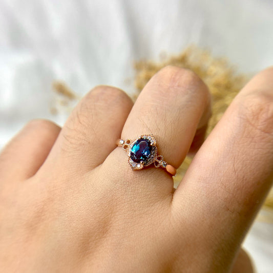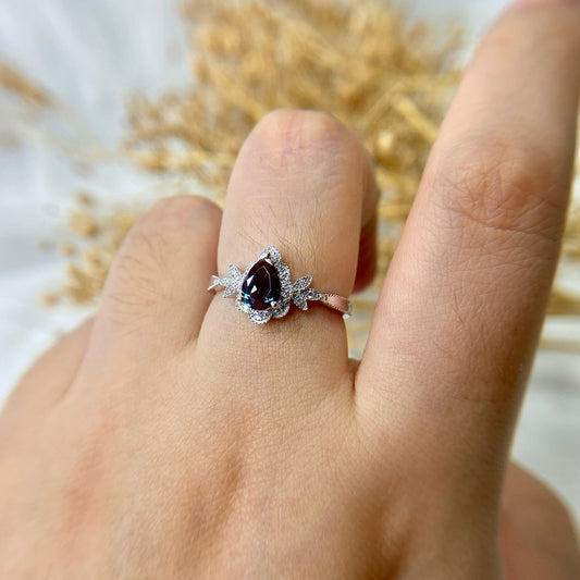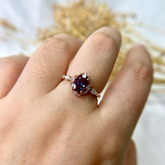 Vintage Alexandrite Engagement Ring 14k18k White Gold Antique Moissanite Ring Bridal Jewelry Art Deco Wedding band Diamond Anniversary Gift